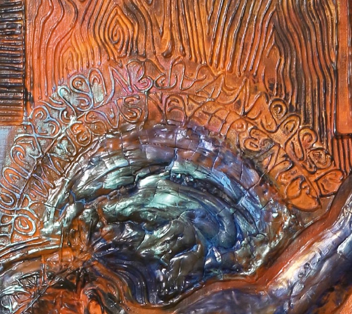 Technologie: Olejomalba na plátně – kombinovaná technika: latex, sádra, písek. Olejové a akrylové barvy – metalízy s kovovým leskem.