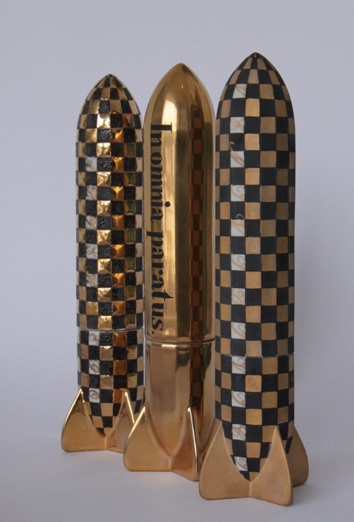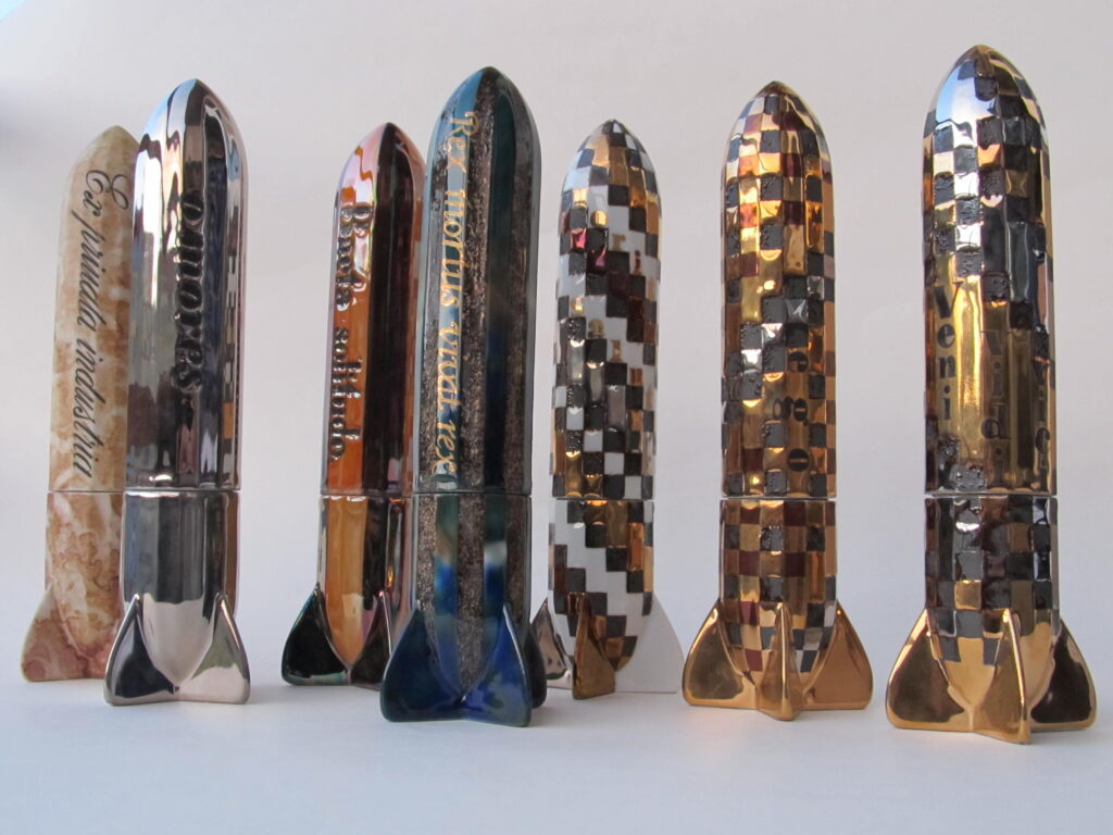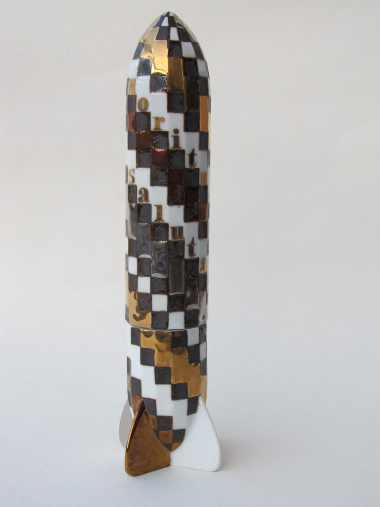 Humidory – Zeppelin Humidory, Porcelán Rozměry: výška 22cm. Technika: sole, vtavná barva, reliéf, zlato, platina, bronz, biskvit, listr v různých kombinacích. All