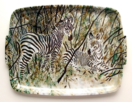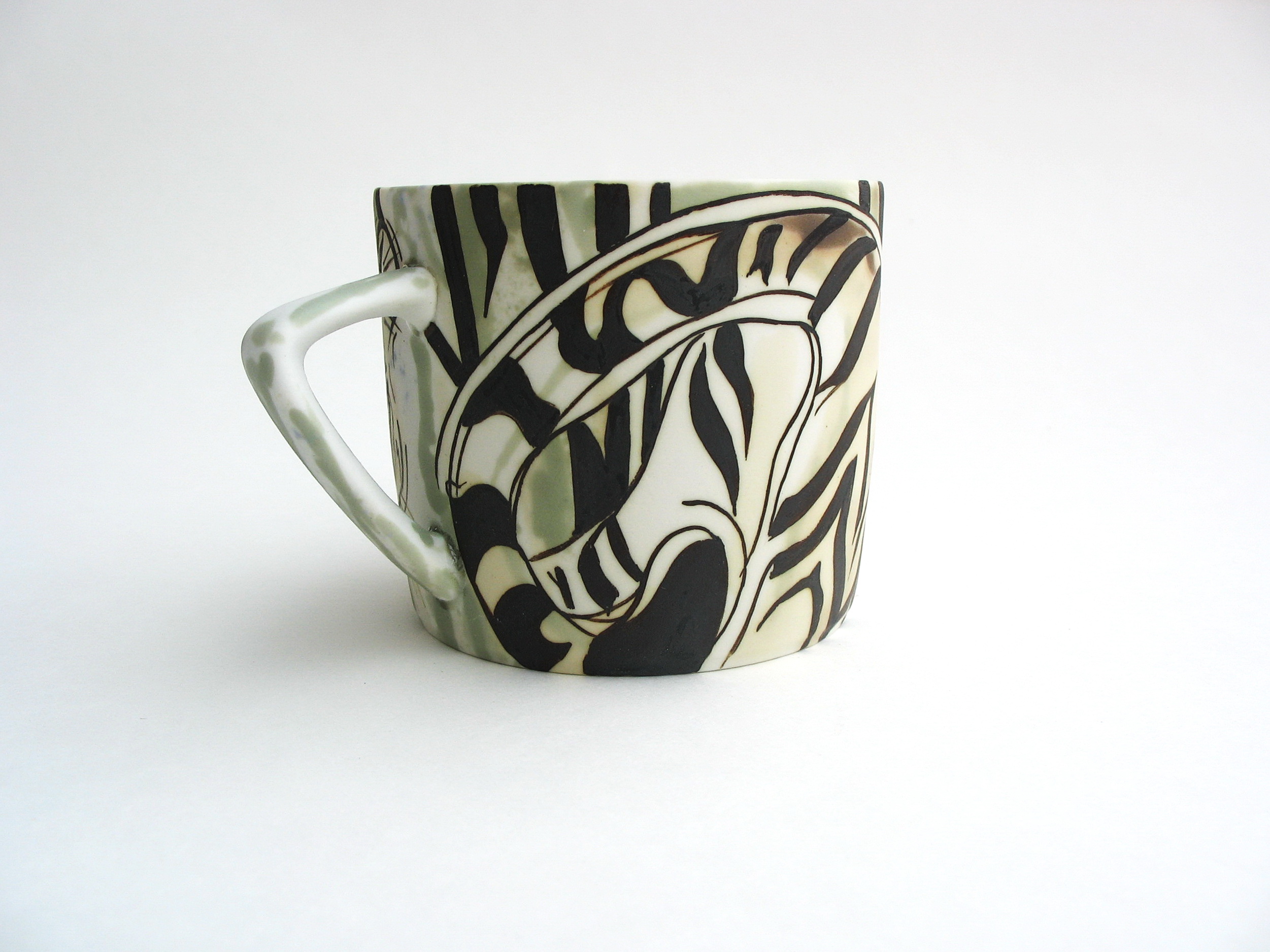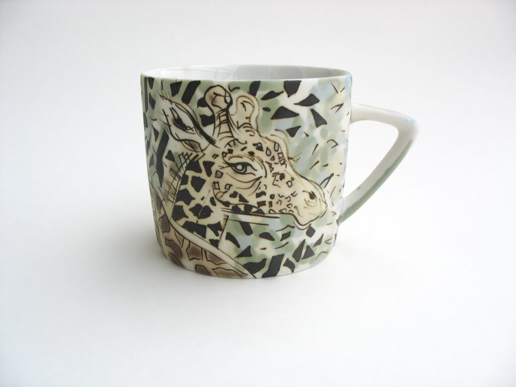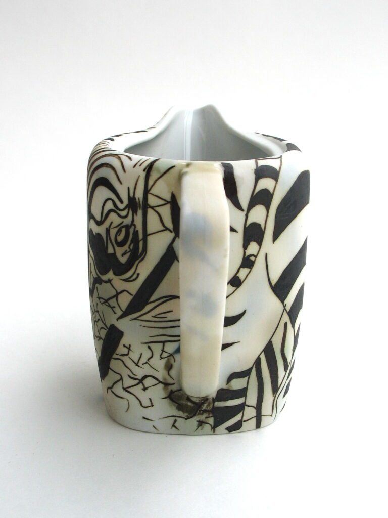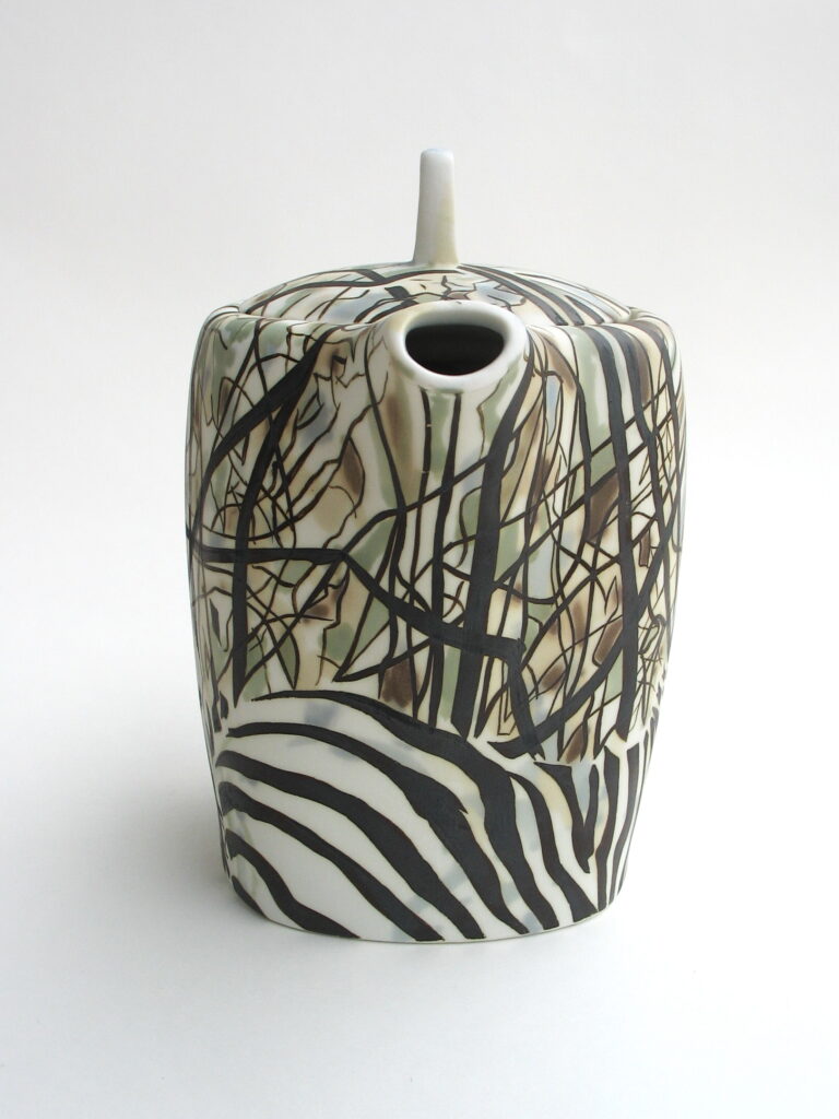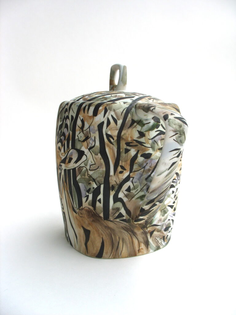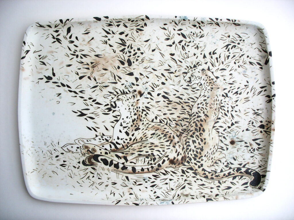 Porcelánový servis „Mimikry I“ Mimikry, Porcelán Technika: biskvit, vtavné barvy a sole. Kávové a přátelské soupravy. šálek 1,5dcl a podšálek pr. 14cm konvice kávová 3,5dcl podnos 43x30cm cukřenka mlékovka 1,25dcl All