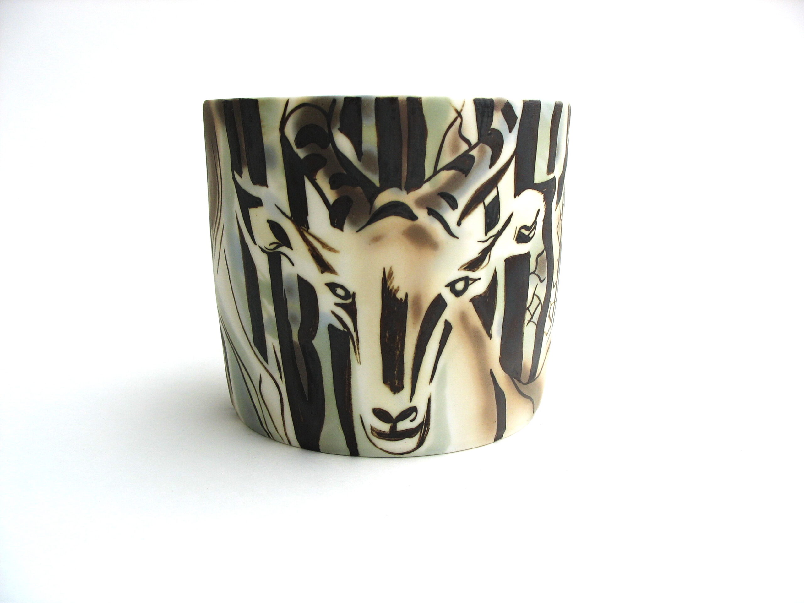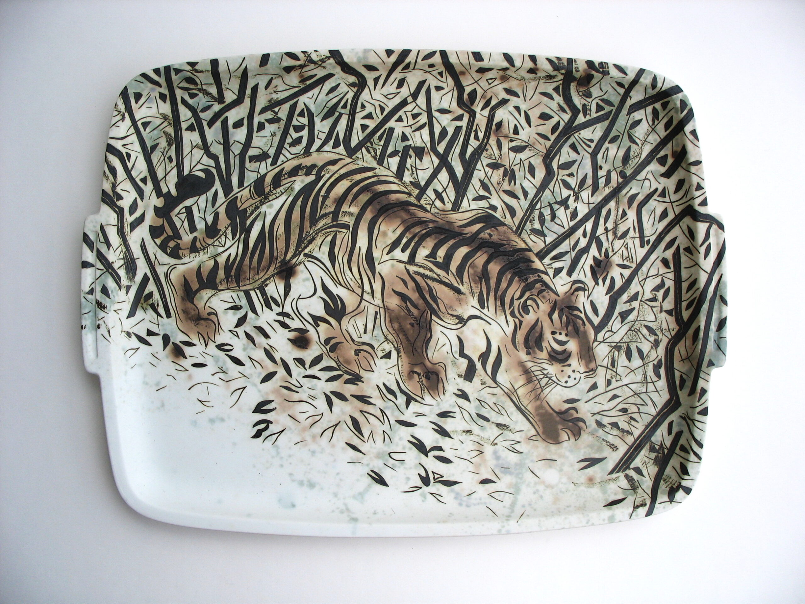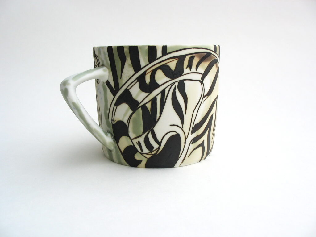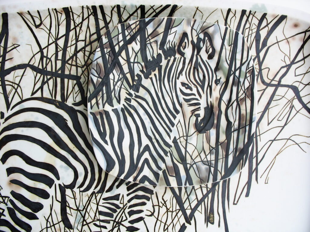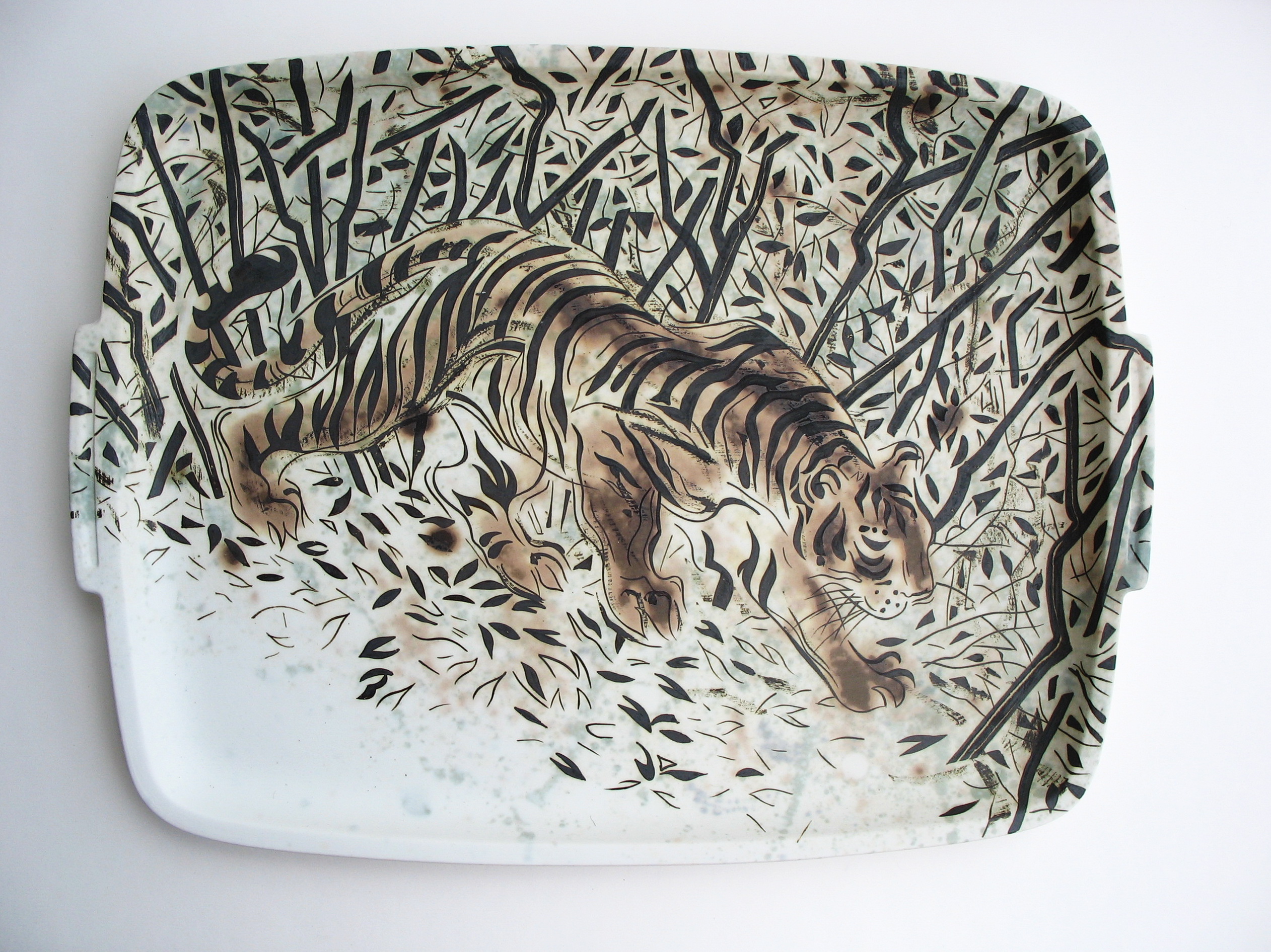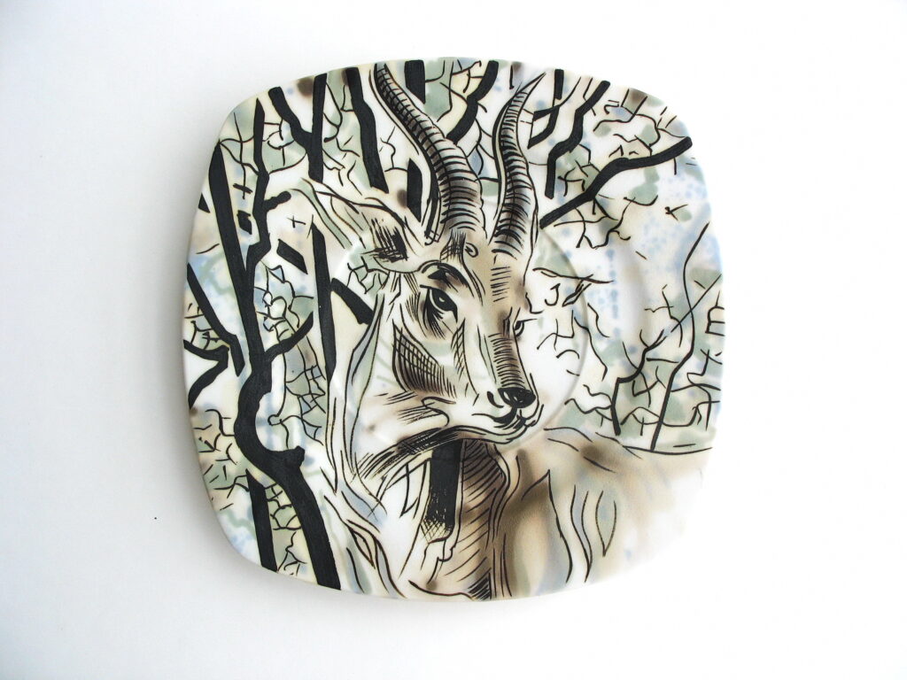 Porcelánový servis „Mimikry I“ Mimikry, Porcelán Technika: biskvit, vtavné barvy a sole. Kávové a přátelské soupravy. šálek 1,5dcl a podšálek pr. 14cm konvice kávová 3,5dcl podnos 43x30cm cukřenka mlékovka 1,25dcl All