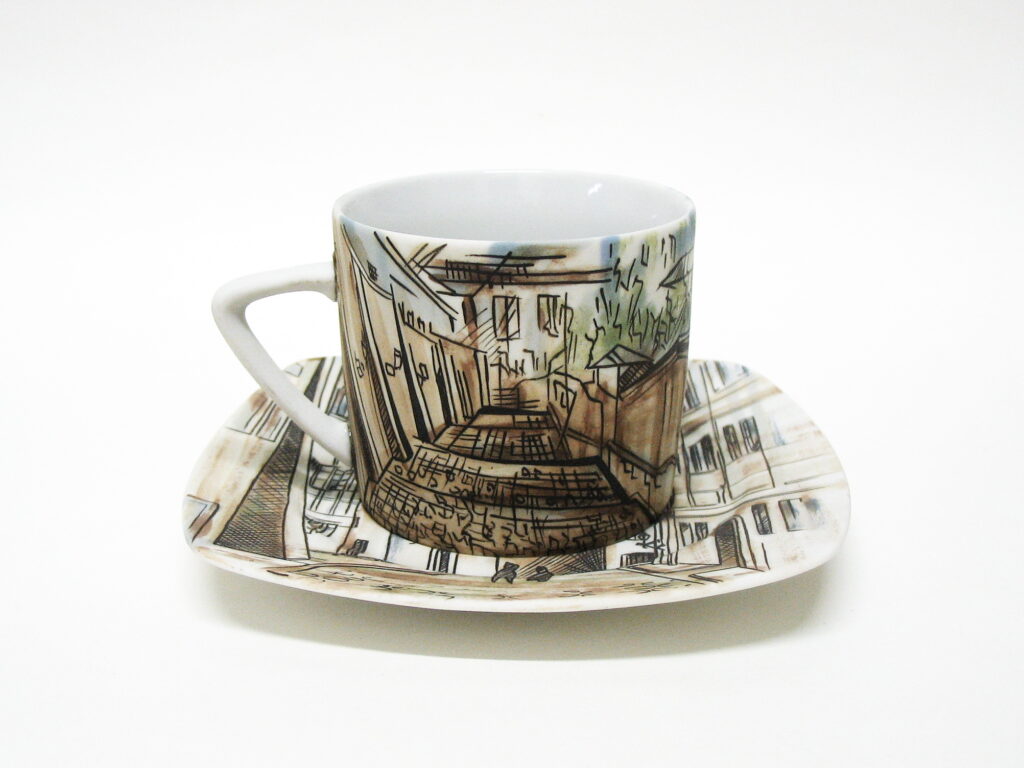 Technika: biskvit, malba solemi a vtavnou barvou.
