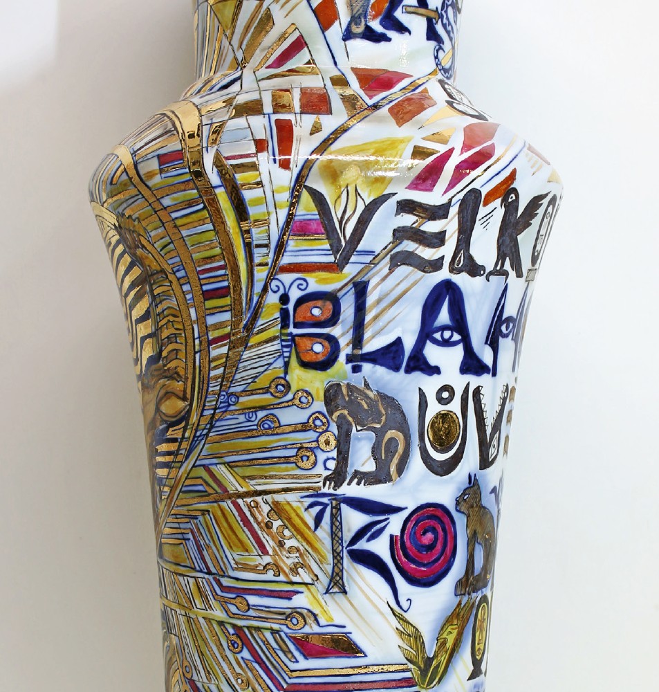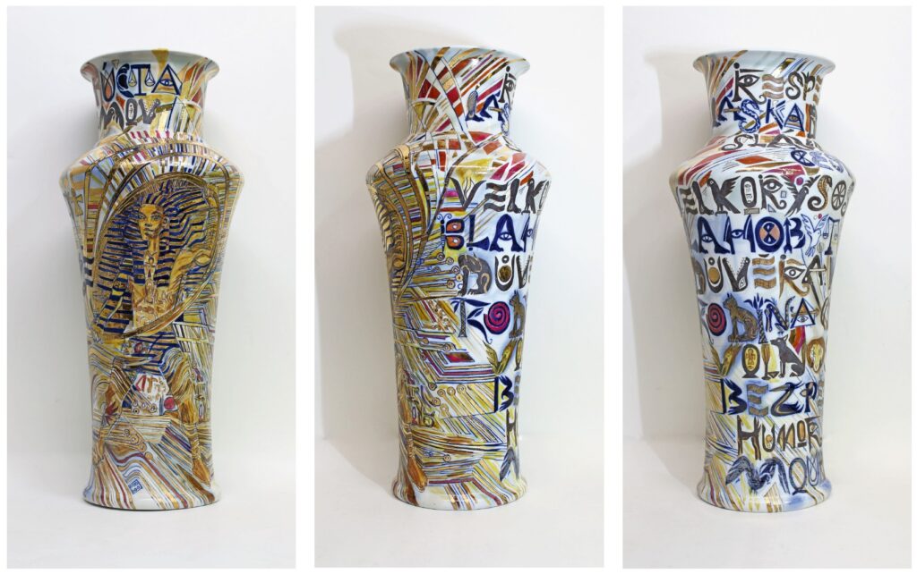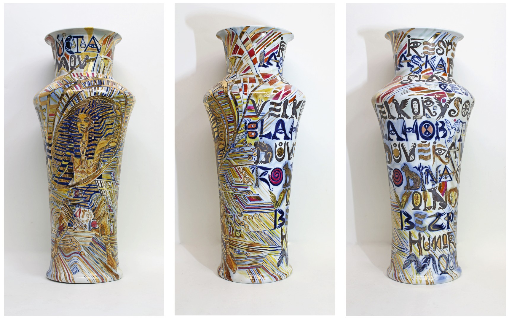 Sloupová váza „Tutanchamon a hieroglyfy“