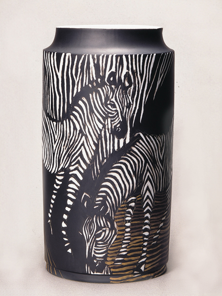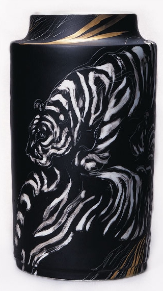Vázy s motivem zebry či tygra v noci, v. 35cm.