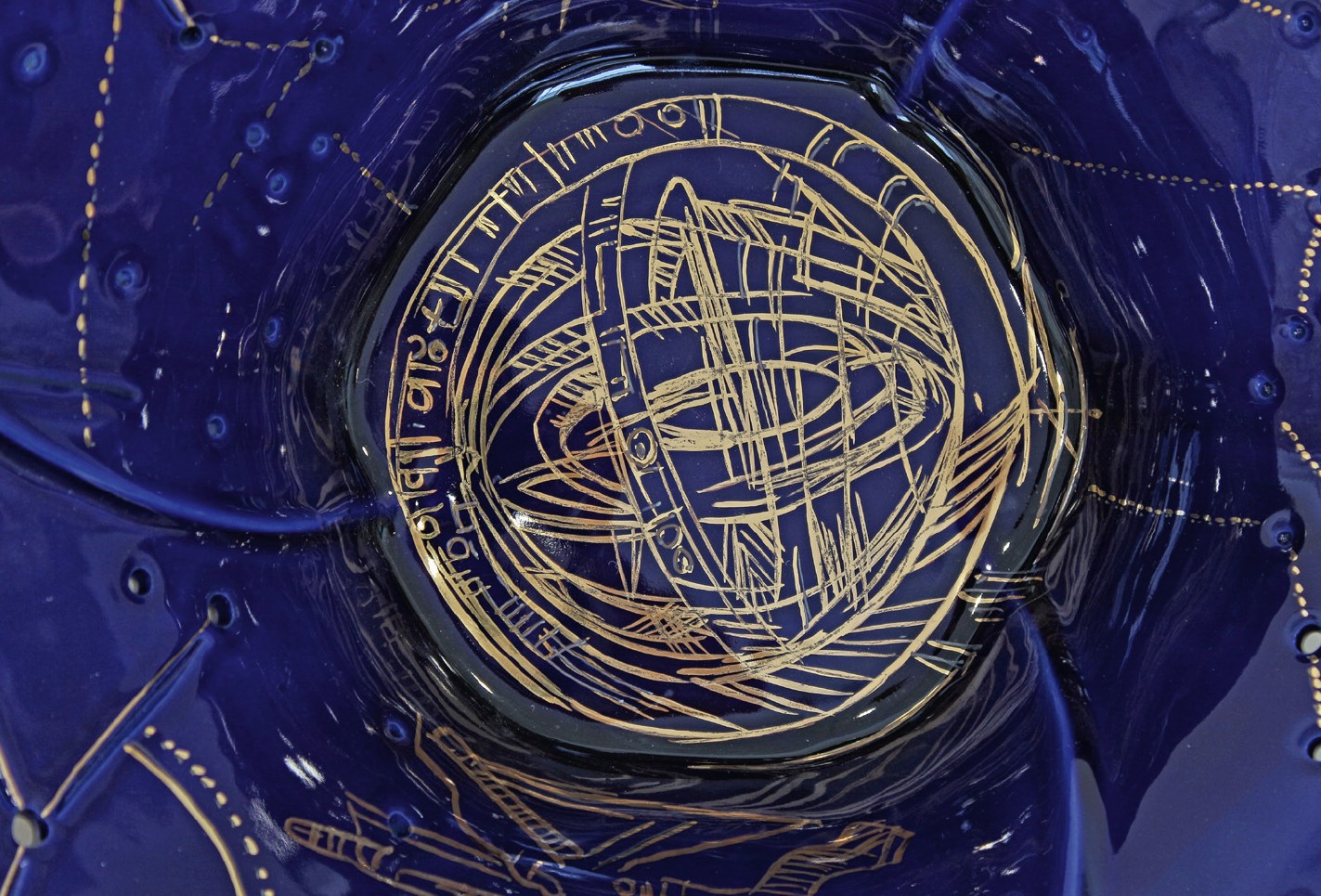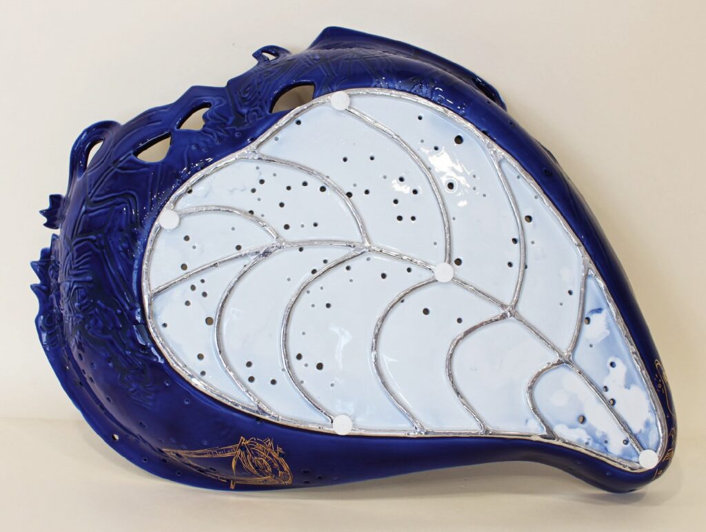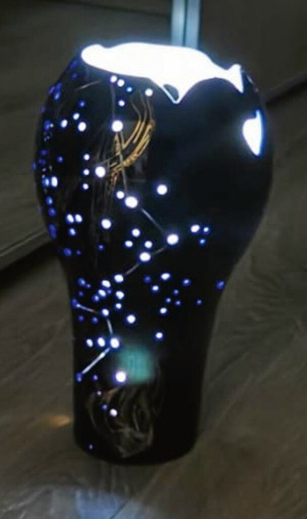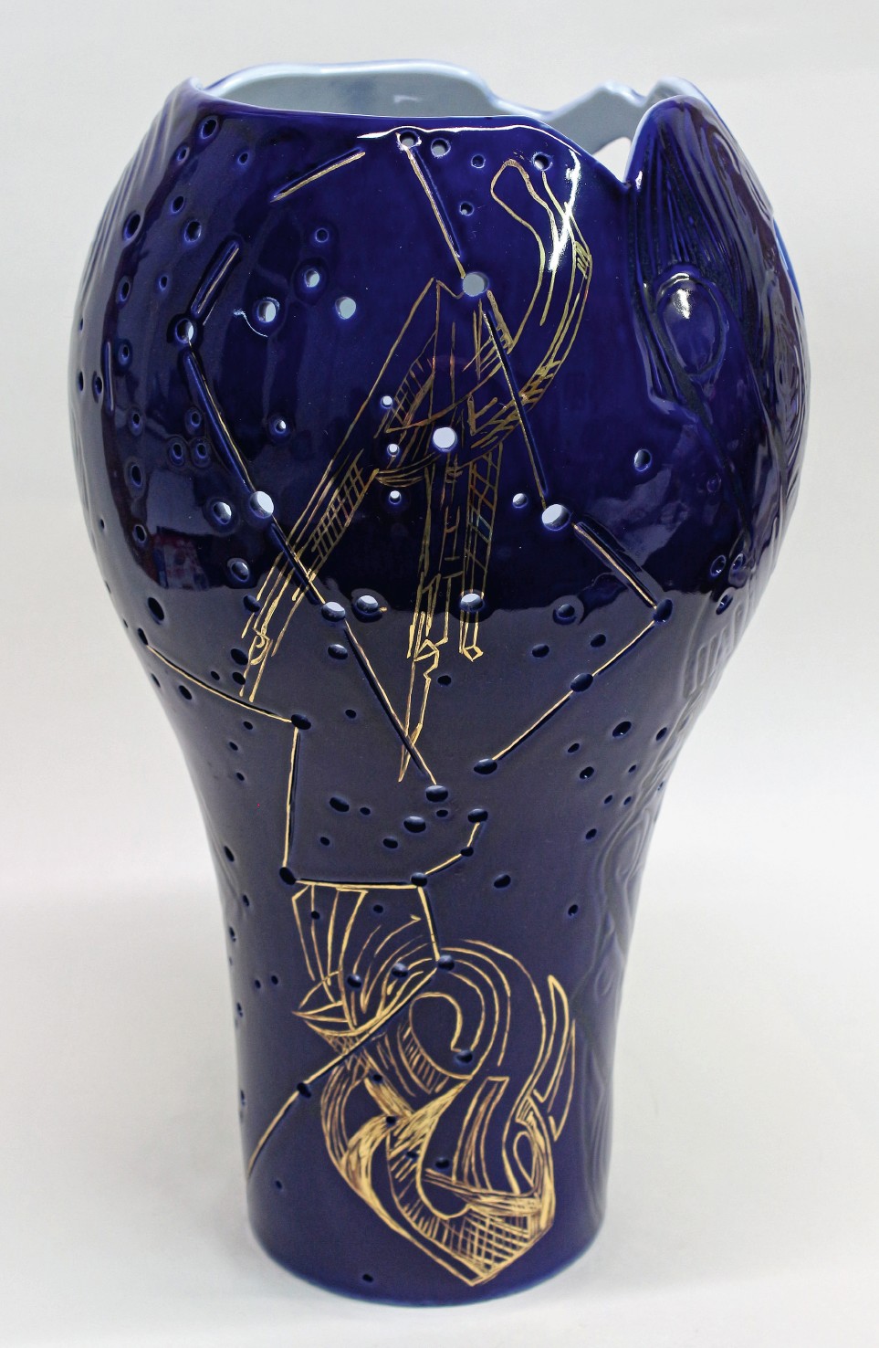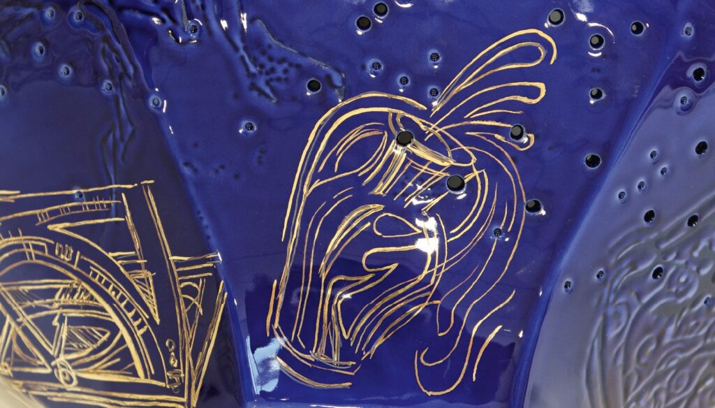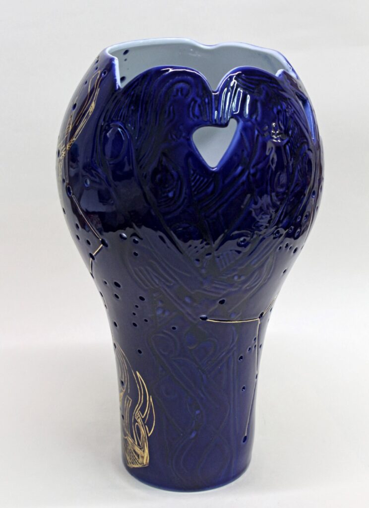 Technologie: glazovaný porcelán, horký vosk – basreliéf; malba kobaltem pomocí airbrushe; zlato, platina; prořez vysokofrekvenční frézkou, otvory vytvořené vrtačkou (hvězdná obloha); páleno na 820 °C.