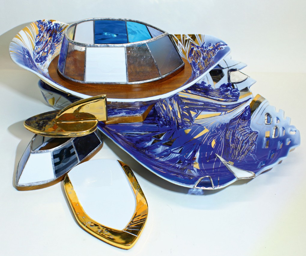 Porcelánový artefakt „Loď pokladů – šperkovnice“ se skládá se ze čtyř objektů:
