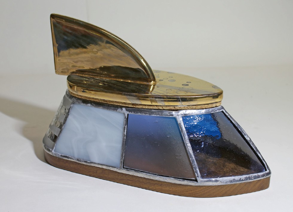 • „malá kajuta“ (15 × 15 cm; vitráž: pískované sklo; korek)