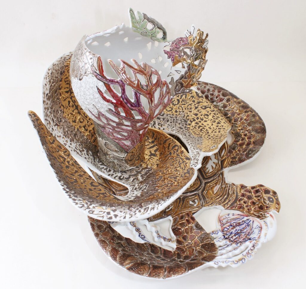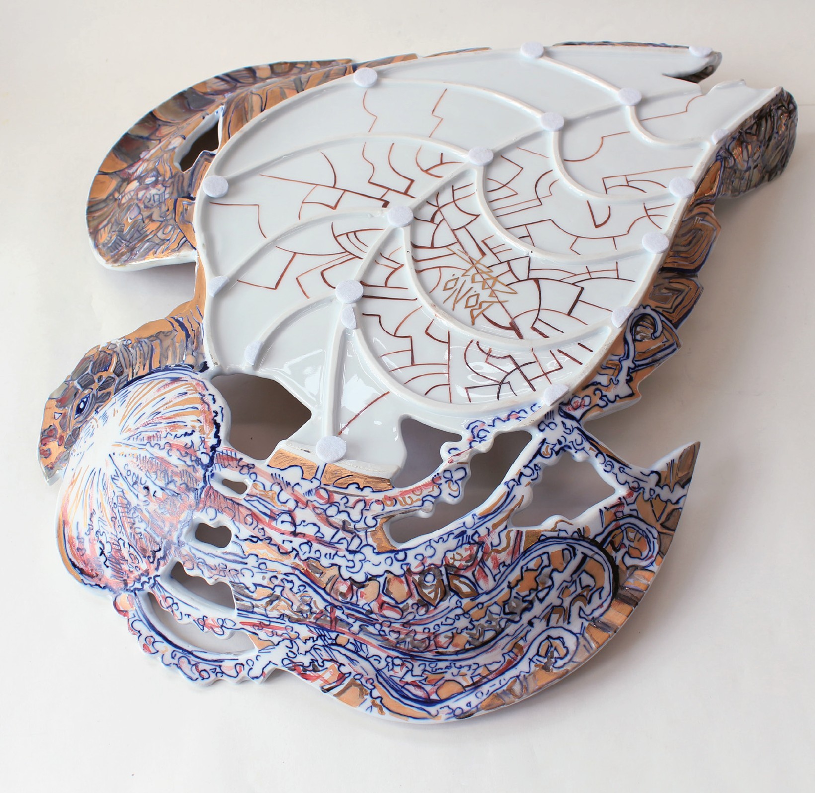 Porcelánový triptych „Rudé moře“ se skládá z těchto prvků: