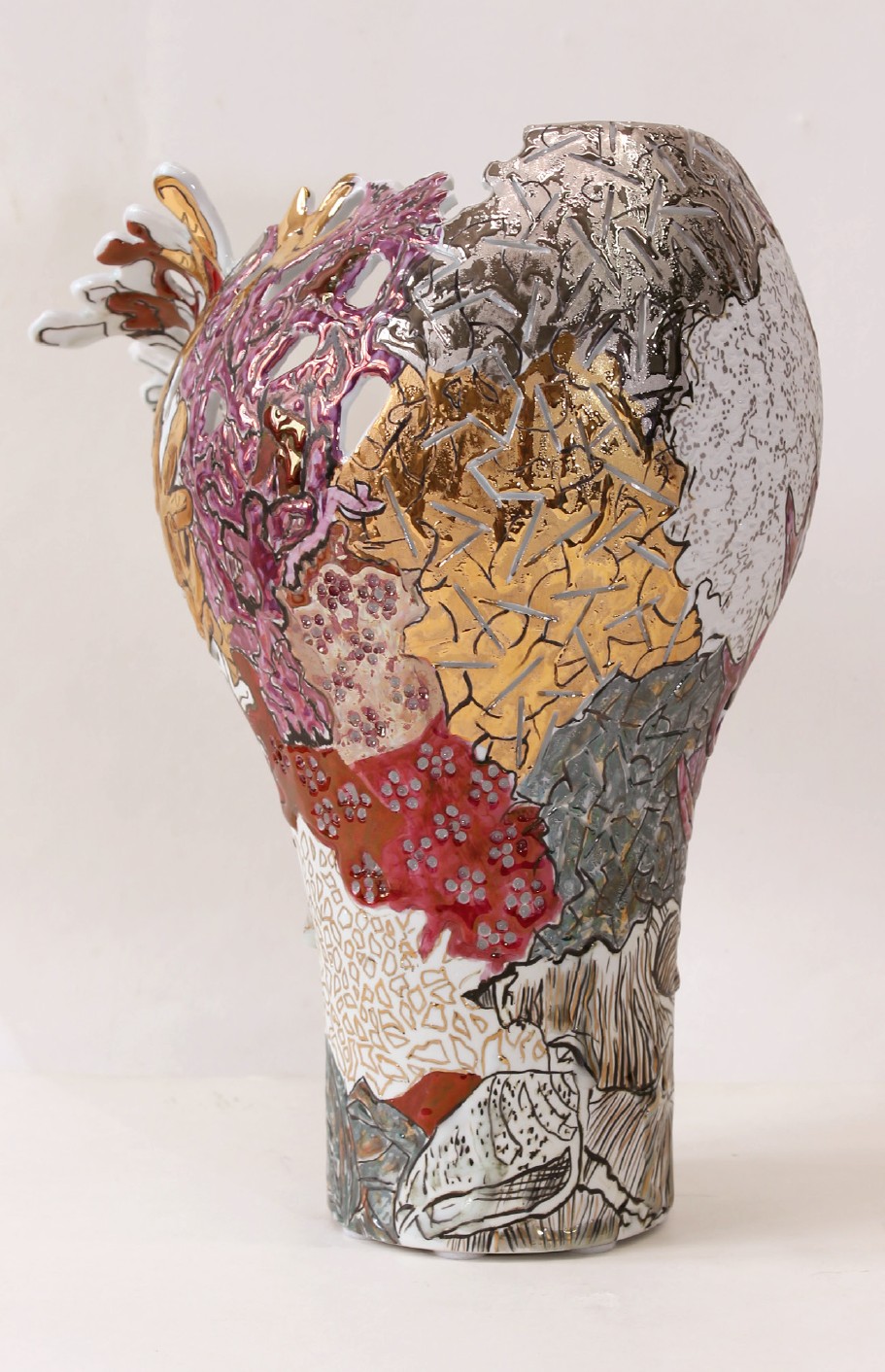 Technologie: páleno na 6 výpalů, prořez vysokofrekvenční frézkou, malba horkým voskem – basreliéf, malba kobaltem a vtavnou barvou, výpal na 1400 °C, zlato, platina, listery – dekor. výpal na 820 °C.