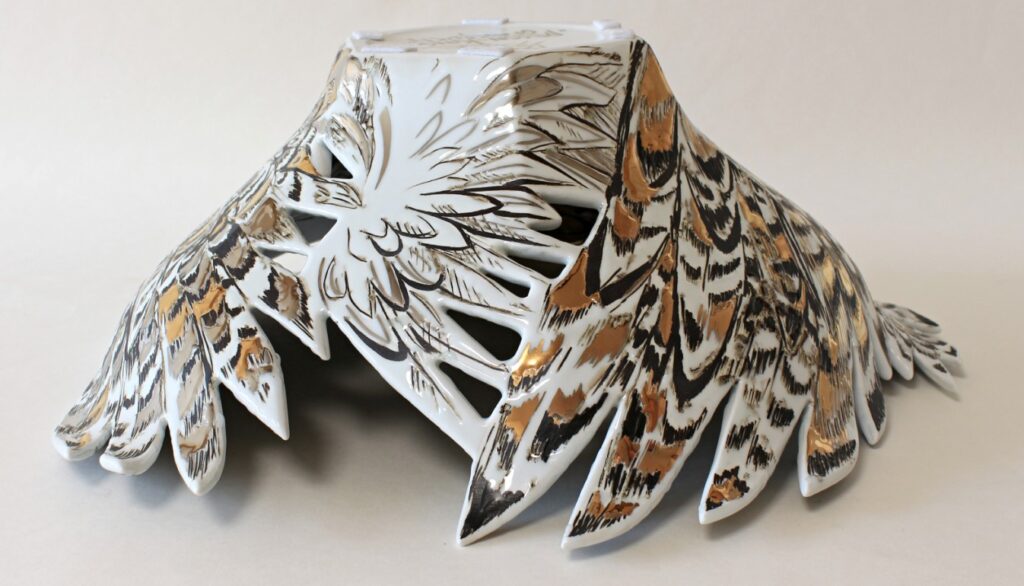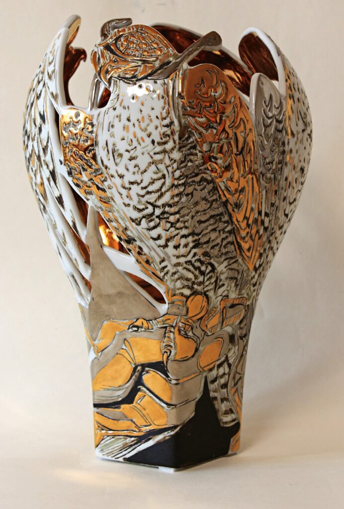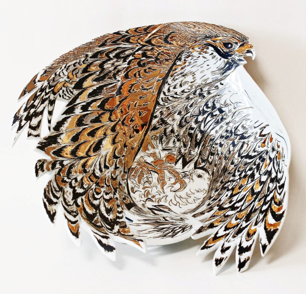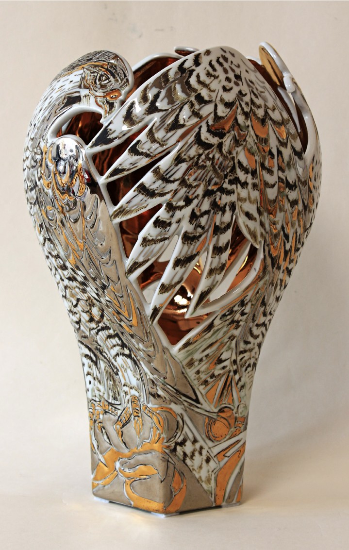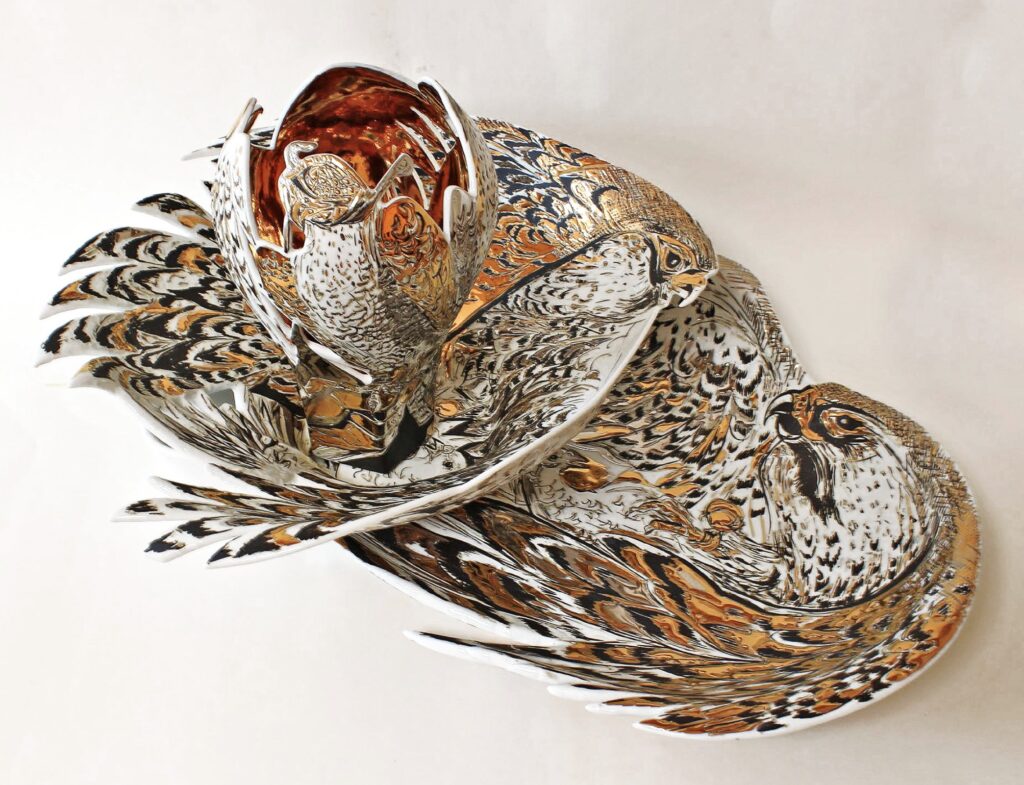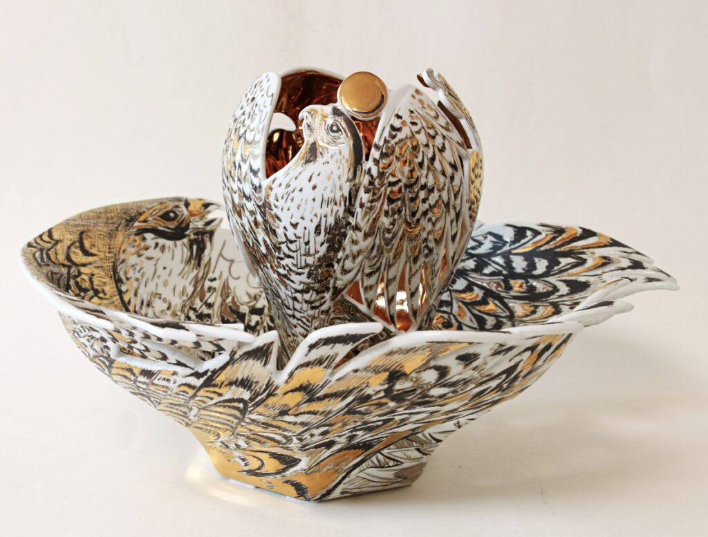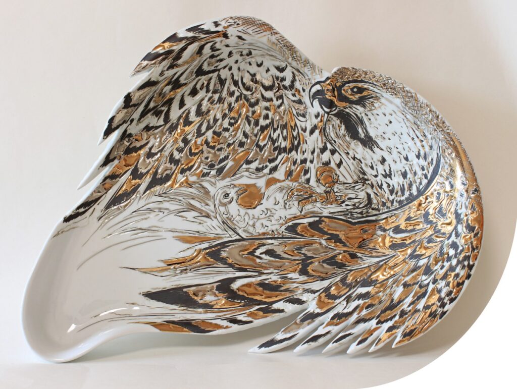 Porcelánový triptych „Sokolnictví“ z cyklu „Květ“ se skládá se ze tří prvků: